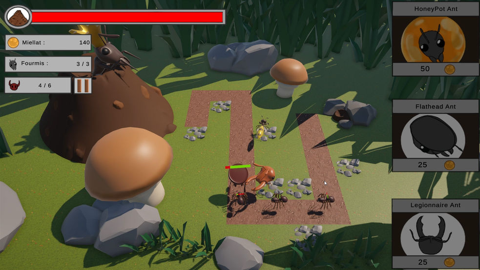 AntHill est un Tower Defense où le but du joueur est de protéger son nid de fourmis face aux attaques des prédateurs.