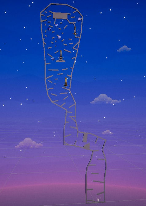 Les passages sont de plus en plus complexes à franchir en étant plus étroit et avec plus de chances de rebondir sur les obstacles en sachant que le joueur a de plus en plus de chances de retomber tout en bas.