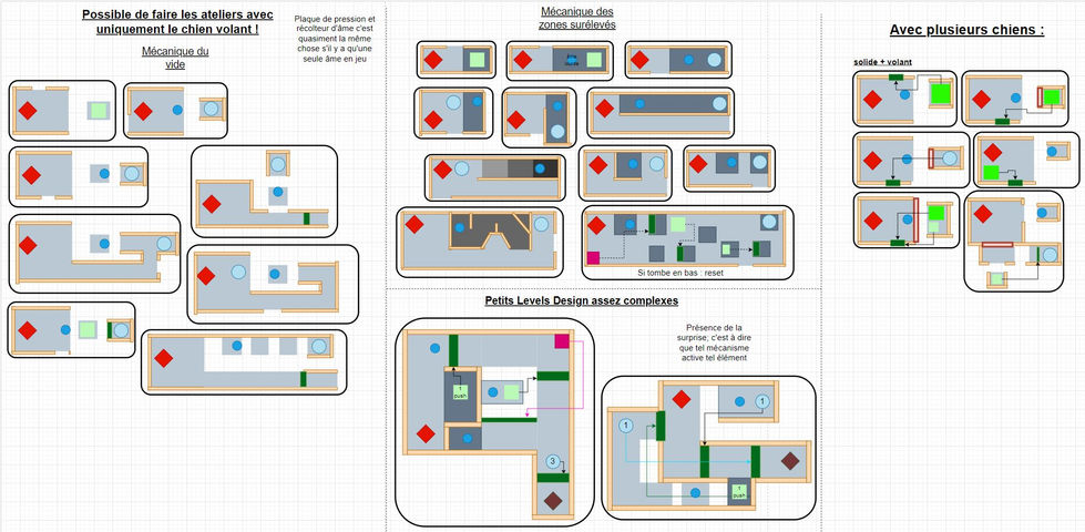Au début, nous avons fait des recherches de Levels Design chien par chien, séparément les uns des autres pour voir toutes les possibilités possibles à l'individuel.