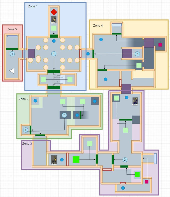 Avant de démarrer les Level Design, nous avons mis en place une légende commune et nous avons établi des règles au niveau des distances afin que tous les Levels Design soient compréhensibles et logiques les uns avec les autres.